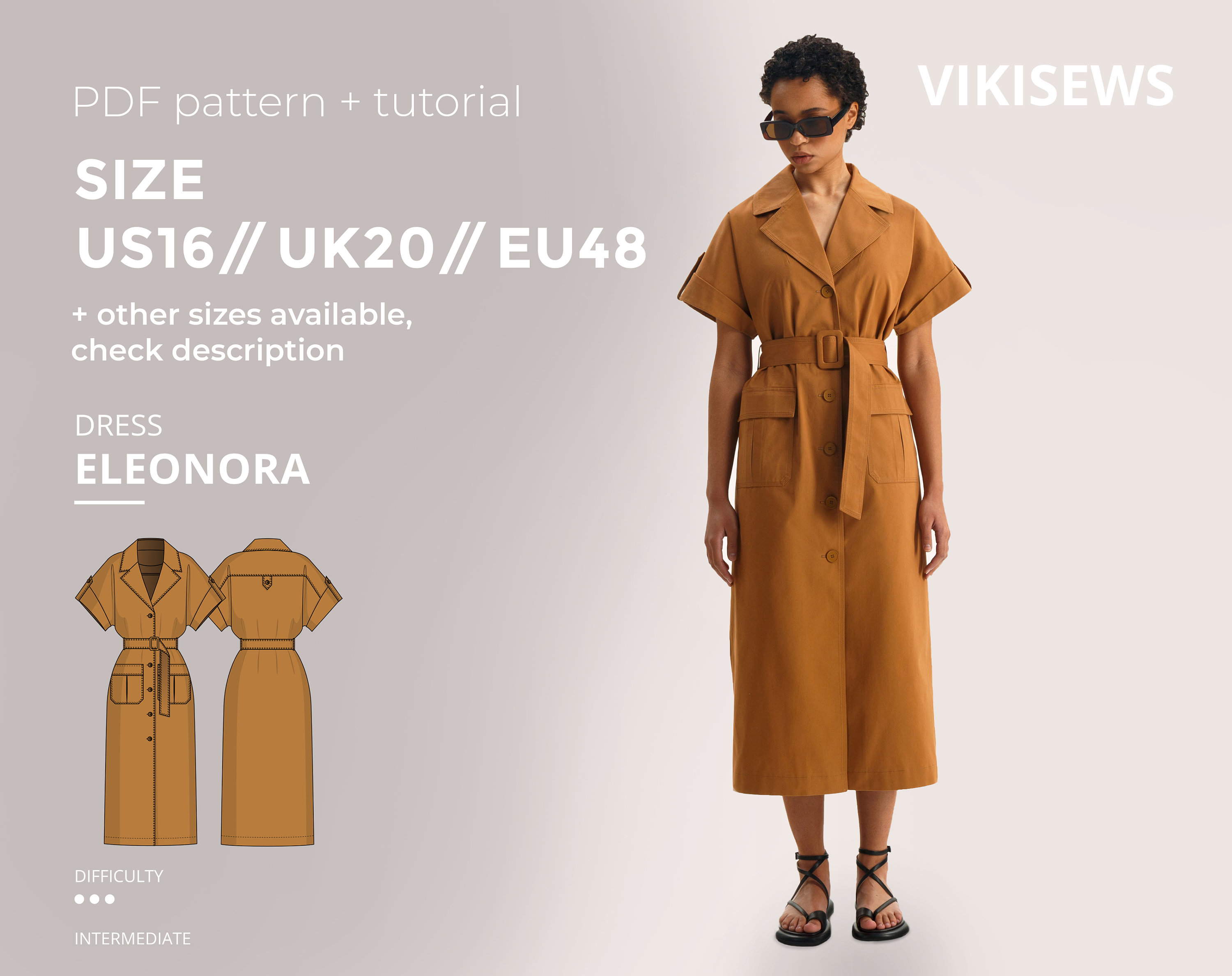 Eleonora Dress Sewing Pattern With Tutorial Size Us 16 Uk 20 Etsy